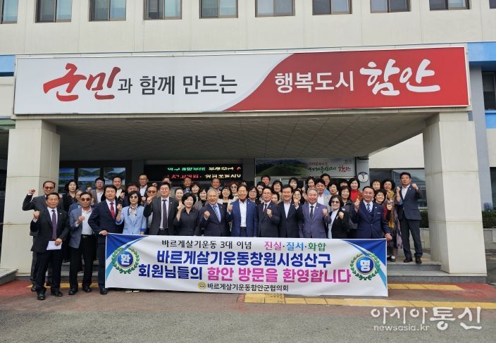 [아시아통신] 바르게살기운동 함안군협의회(회장 조용찬)는 지난 21일 함안군청 중회의실에서 창원시 성산구협의회(회장 김종호)와 함께 ‘바르게살기운동 핵심회원 교류 간담회’를 개최했다.