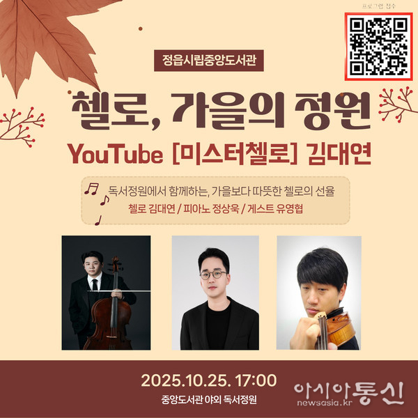 전북 정읍시에서 『책과 음악이 함께하는 가을밤』이라는 테마로 야외도서관 행사를 마련했다고 합니다. 주요 내용은 다음과 같습니다.