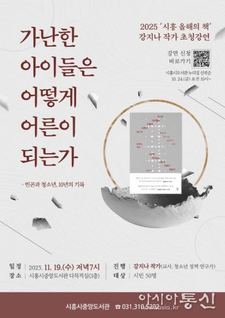 [아시아통신] 시흥시 중앙도서관은 ‘2025년 시흥 올해의 책’으로 선정된 '가난한 아이들은 어떻게 어른이 되는가'의 저자 강지나 작가를 초청해 11월 19일 오후 7시 중앙도서관 3층 다목적실에서 시민 강연회를 개최한다.