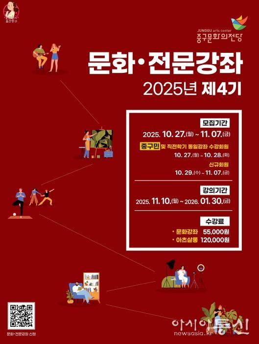 [아시아통신] 울산 중구문화의전당이 2025년 4기 문화센터 수강회원을 모집한다.