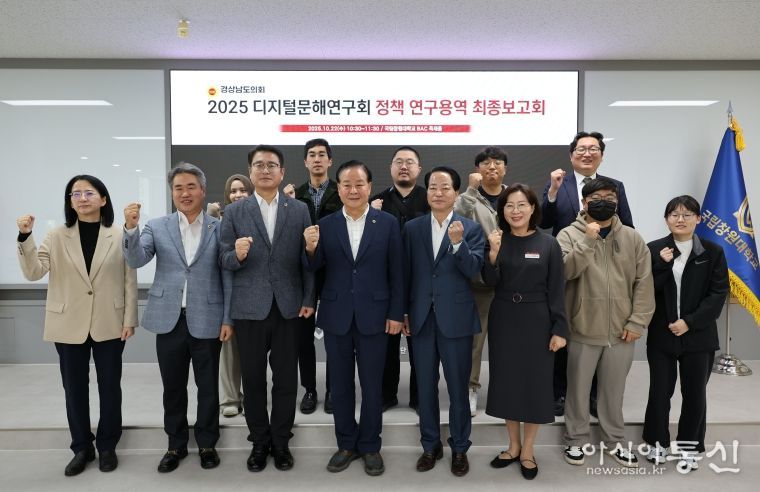 [아시아통신] 경상남도의회 의원 연구단체인 ‘디지털문해연구회(회장 박남용 의원)’는 지난 22일 국립창원대학교 욱재홀에서 '경상남도 디지털 소외 계층을 위한 맞춤형 미디어교육 프로그램 개발 연구' 정책연구용역의 최종보고회를 개최했다.