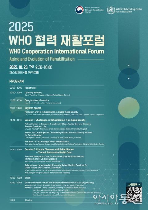 [아시아통신] 보건복지부 국립재활원은 10월 23일 피스앤파크 컨벤션(서울 용산구)에서 ‘세계보건기구(WHO) 협력 재활 토론회’를 대면 및 온라인으로 동시 개최한다.