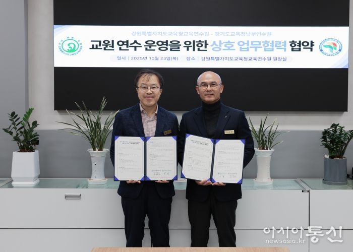 [아시아통신] 경기도교육청남부연수원이 23일 강원특별자치도교육청교육연수원과 교원 연수 협력을 위한 업무협약(MOU)을 체결했다.