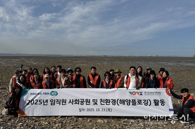 [아시아통신] 경기도여성가족재단은 23일 화성시 고온항 및 궁평항 일대에서 임직원 36명이 참여한 가운데 ‘2025년 사회공헌 및 친환경 활동’(해양 플로깅)을 펼쳤다.