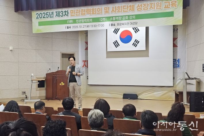 [아시아통신] 의성군은 10월 27일 종합복지관 대강당에서 관내 사회단체 임원 및 실무자 등 70여 명이 참석한 가운데 ‘2025년 제3차 민관협력회의 및 성장지원교육’을 개최했다고 밝혔다.