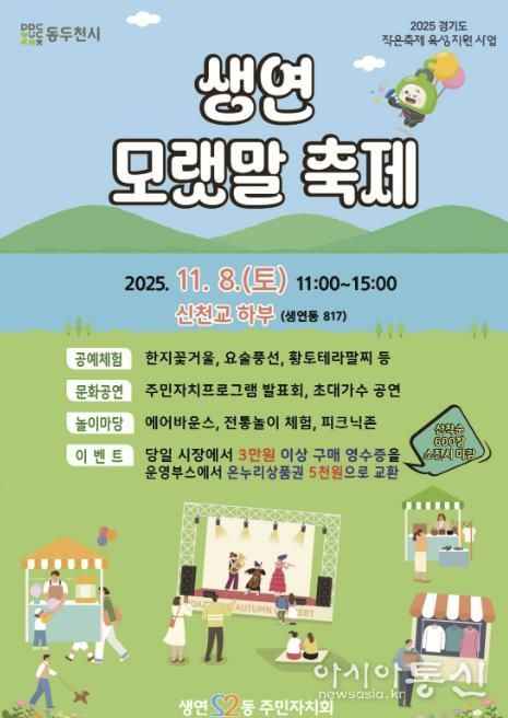 [아시아통신] 동두천시 생연2동 주민자치회는 오는 11월 8일 오전 11시, 신천교 하부 공간에서 ‘2025년 생연 모랫말 축제’를 개최한다.
