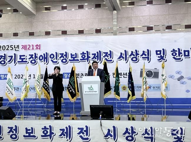[아시아통신] 경기도장애인정보화협회는10월29일 오전11시 렛츠런파크 서울 컨벤션홀 에서‘제21회 경기도장애인정보화제전 및 한마음축제’를 성황리에 개최했다. 이번 행사는 경기도청, 경기도의회, 경기도교육청의 후원으로 열렸으며, 협회 산하18개 시·군지회 회원과 장애인 참가자, 자원봉사자 등1,000여명이 참석해 정보와 문화가 어우러진 포용의 축제를 펼쳤다.