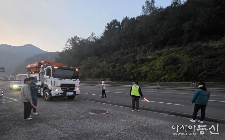 [아시아통신] 함안군은 지난 5일 새벽 6시 30분부터 7시 30분까지 국지도 30호선 신당고개 구간에서 ‘2025년 겨울철 대설 대응 현장훈련’을 실시했다고 밝혔다.