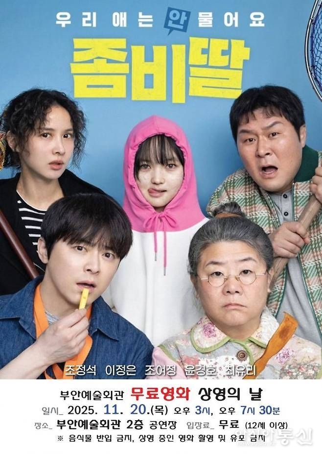 부안군이 준비한 영화 「좀비딸」 무료 상영회는 다음과 같습니다: