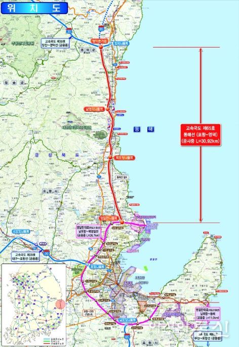 [아시아통신] 국토교통부와 한국도로공사는 동해고속도로 포항–영덕 구간을 11월 8일 오전 10시 개통한다.