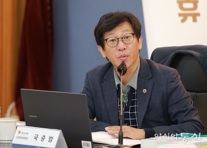 [아시아통신] 경기도의회 안전행정위원회 국중범 의원(더불어민주당, 성남4)은 7일 시흥소방서에서 실시된 2025년 행정사무감사에서 소방대원의 근무복 세탁 지원과 터널 화재 대응체계 강화 필요성을 집중적으로 제기했다.