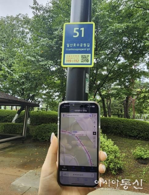 QR코드를 스캔하면 해당 지점의 도로명주소, 지도 위치, 주변 시설 정보가 표시된다. 음성안내와 112·119 문자신고 기능도 포함돼 긴급상황 시 신속한 위치 전달이 가능하다.
