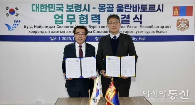 [아시아통신] 보령시는 7일 몽골 울란바토르시와 상호 발전적인 협력관계 증진을 위한 ‘보령시–울란바토르시 우호협력 양해각서(MOU)’를 체결했다.
