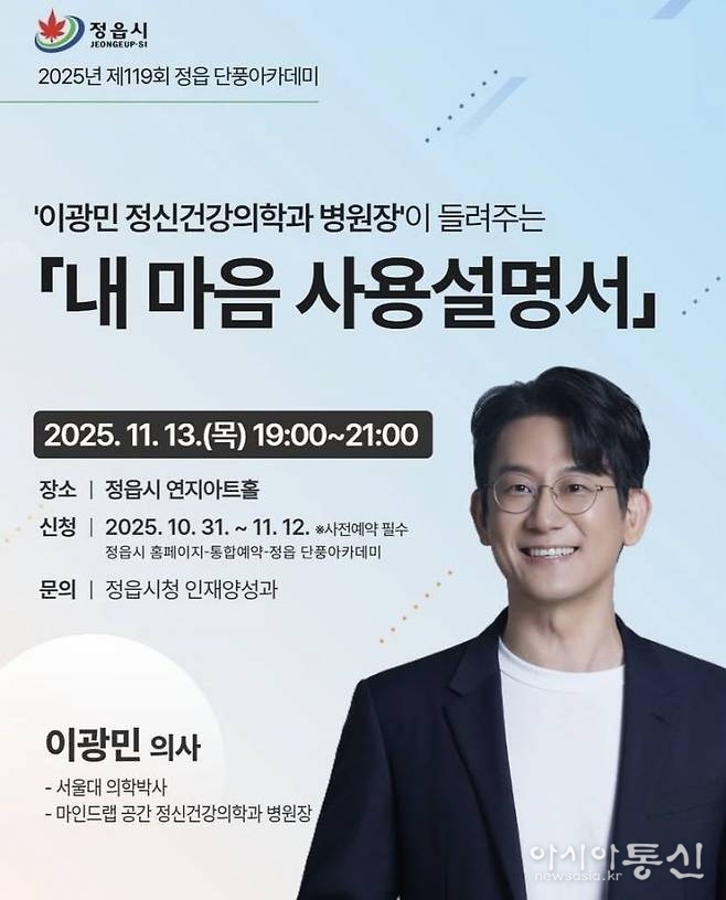 11월 3일 7시, 정읍 연지아프홀에서 열리는 이번 강연에는 직장인, 학생, 일반 시민 등 200여 명이 참석할 것으로 본다.