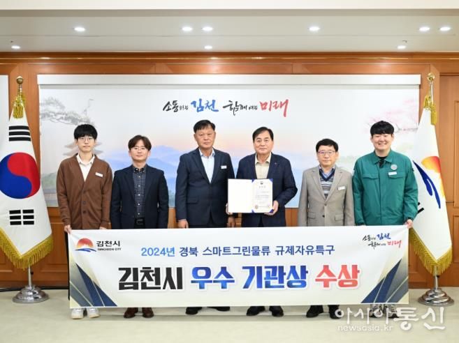 [아시아통신] 김천시는 지난 11월 6일 대전에서 이틀간 열린 중기부 주최 '혁신특구 ON 2025' 행사에서 스마트그린물류 규제자유특구 운영 성과를 인정받아 우수기관상을 수상했다고 밝혔다.