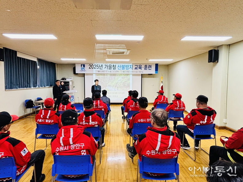수원특례시(시장 이재준)가 10일 공원녹지사업소 대회의실에서 가을철 산불방지 교육·훈련을 했다.