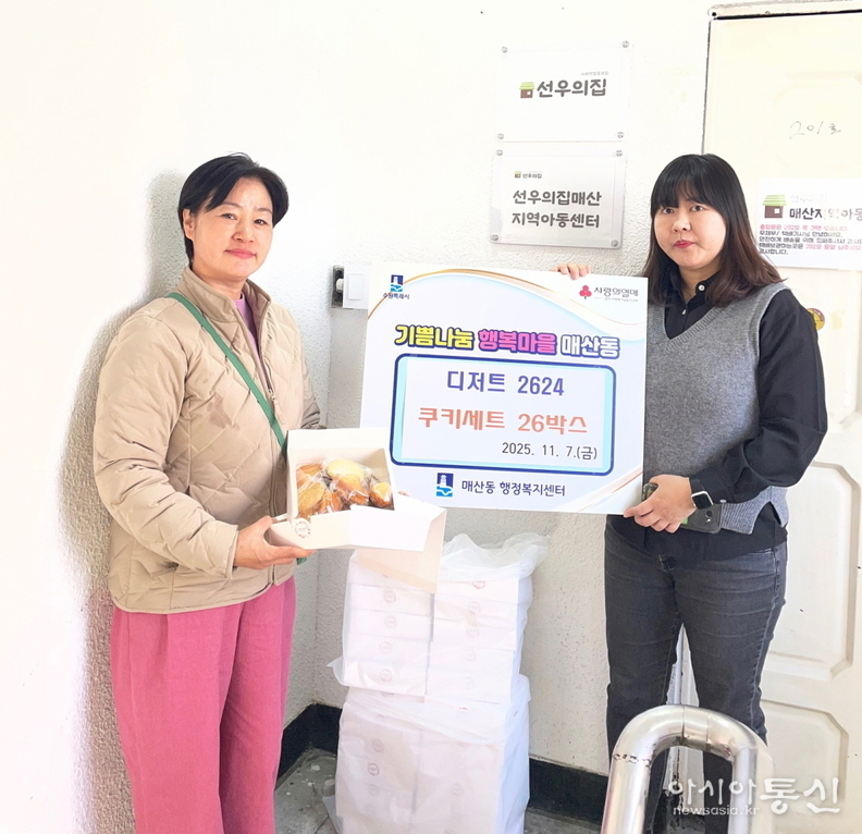 수원시 팔달구 매산동(동장 동정숙)은 지난 7일, 매산동 지역사회보장협의체 및 지역 업체 ‘디저트 2624’와 함께 지역아동센터 아동들을 위한 쿠키 나눔 후원을 진행했다.