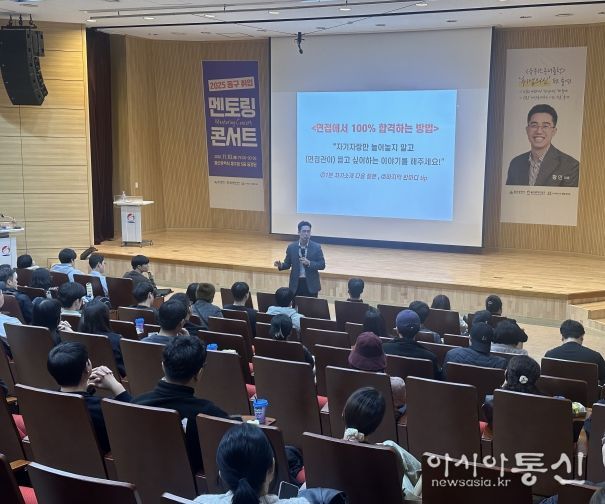 [아시아통신] 울산 동구는 지난 11월 10일 오후 7시 동구청 5층 중강당에서 유명 취업 강사인 황인 강사를 초청해 ‘2025 동구 취업 멘토링 콘서트’를 성공적으로 개최했다.