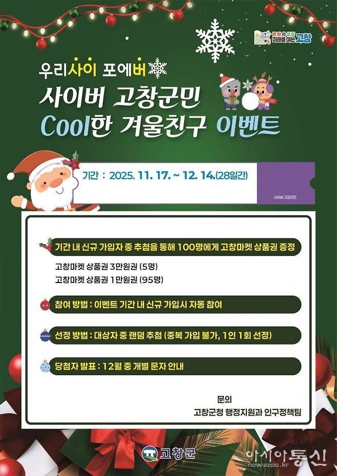 이벤트마다 기간, 경품, 참여 방식이 다르므로, 신청 전에 사이버 고창군민 공식 홈페이지 또는 고창군 관련 공지사항을 꼭 확인해야 함.