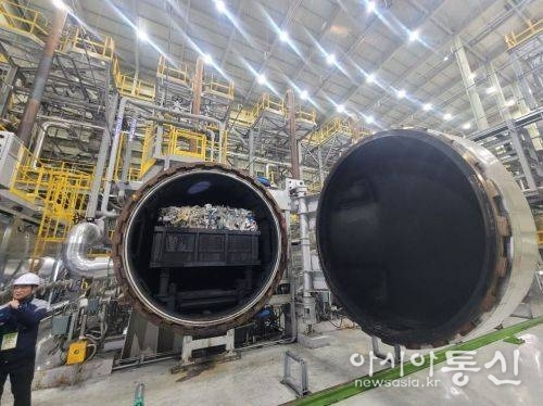 <도시유전 웨이브 정읍공장에 있는 비연소 저온 열 분해 장비의 모습>
