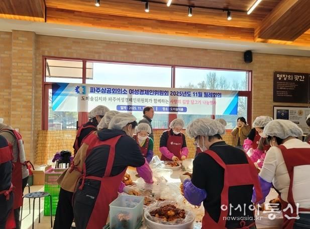 [아시아통신] 파주시는 지난 17일 파주상공회의소 여성경제인위원회가 ‘사랑의 김장 담그기 나눔 행사’를 통해 파주시 취약계층을 위한 김장김치 10kg 500상자를 기탁했다고 밝혔다.
