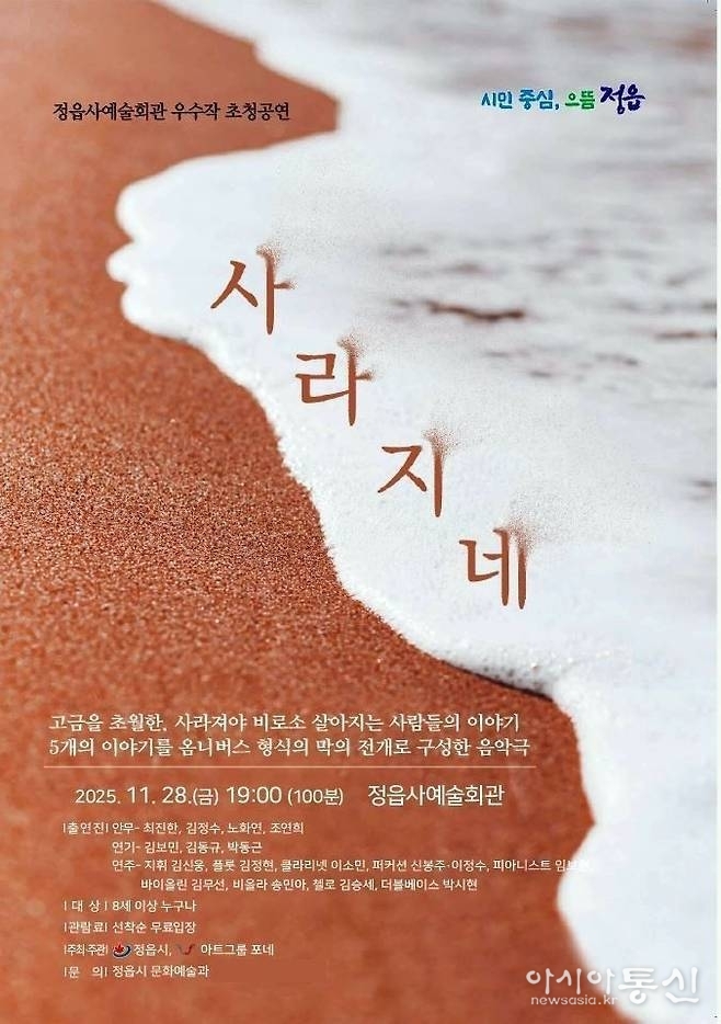 정읍시에서 **음악극 ‘사라지네’**를 11월 28일에 공연한다고 발표했습니다.