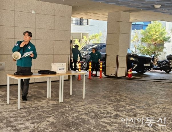 [아시아통신] 울산 동구 노동자지원센터는 11월 20일 오후 2시 자체 자위소방대원, 전하119안전센터, 교육생 등 30여 명이 참석한 가운데 ‘2025년 공공기관 합동 소방훈련’을 실시했다.