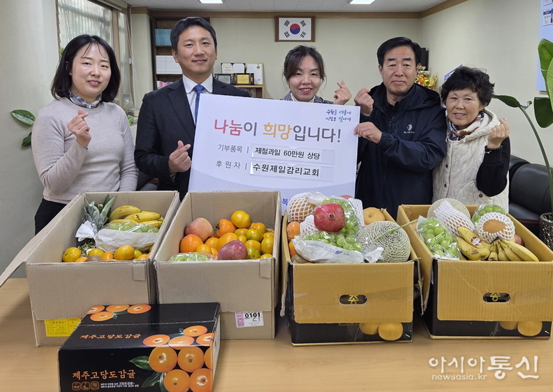 지난 18일 수원제일감리교회는 수원시 팔달구 행궁동(동장 최영희)에 어려운 이웃을 위해 과일을 기부했다고 밝혔다. 이 날 나눔받은 사과, 배, 감 등 가을의 풍성함을 담은 과일 약 5박스는 행궁동 행정복지센터에서 저소득 취약 가구에 따뜻한 마음을 담아 전달했다.