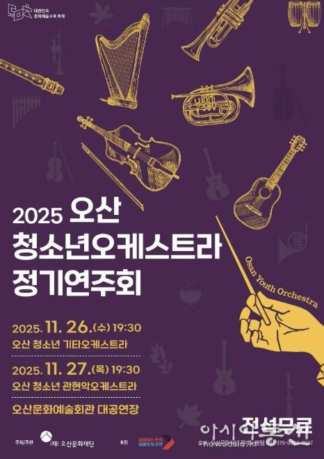 [아시아통신] 오산문화재단이 주최하고 오산시가 후원하는 ‘2025 오산 청소년 오케스트라 정기연주회’가 오는 11월 26일부터 27일까지 오산문화예술회관 대공연장에서 이틀간 개최된다. 공연은 전석 무료로 시민 누구나 관람할 수 있다.