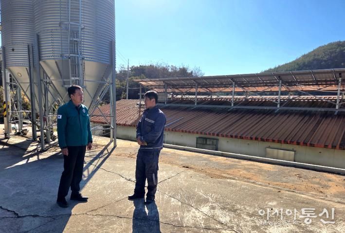 이날 부군수는 철저한 사전 소독 절차를 거친 뒤 육계 농장을 방문해 농장 내 소독시설 가동 여부, 축사 주변 생석회 도포 상태, 외부인 출입 관리 등 차단방역의 핵심 요소 전반을 확인했다.