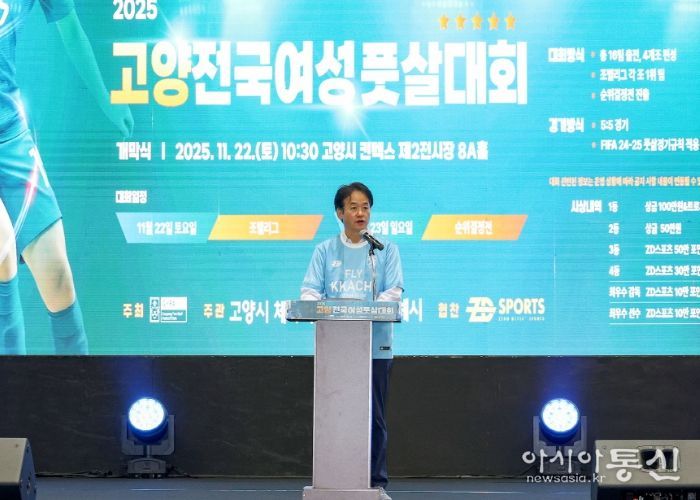 [아시아통신] ‘2025년 고양 전국 여성 풋살대회’가 지난 11월 22일과 23일 양일간 고양시 킨텍스 특설 경기장에서 성대하게 개최됐다.