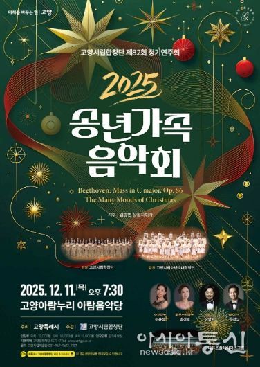 [아시아통신] 고양특례시를 대표하는 문화사절단인 고양시립합창단이 오는 12월 11일 저녁 7시 30분, 고양아람누리 아람음악당에서 제82회 정기연주회‘2025 송년 가족 음악회’를 개최한다.