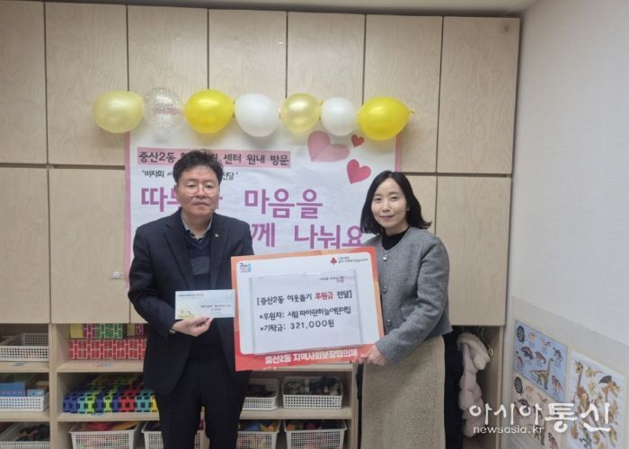 [아시아통신] 고양특례시 일산동구 중산2동는 지난 20일, 시립 파아란하늘 어린이집에서 이웃돕기 성금 32만원을 기탁했다고 밝혔다.