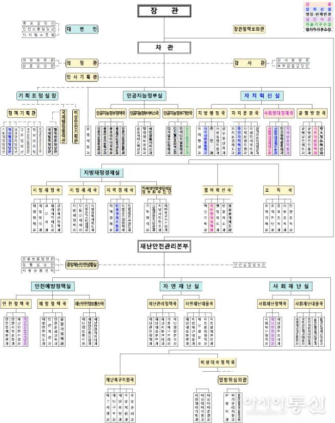 [아시아통신] 행정안전부는 인공지능(AI), 지방정부 및 국민안전 정책 수준을 한단계 더 높이고, 국정과제 추진동력을 강화하기 위한 조직개편을 실시했다고 밝혔다.
