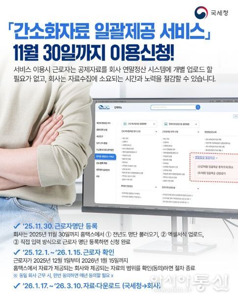 [아시아통신] 「간소화자료 일괄제공 서비스」 11월 30일까지 이용신청!