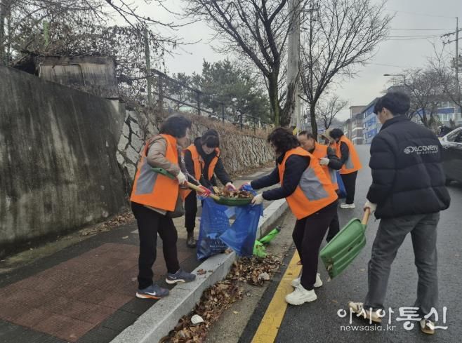 이번 활동은 쌓인 낙엽으로 인한 보행자 미끄럼 사고와 배수로 막힘을 사전에 예방하기 위해 진행됐으며, 통장협의회는 인도와 배수로를 중심으로 낙엽을 수거하고 주변 환경을 정비했다.