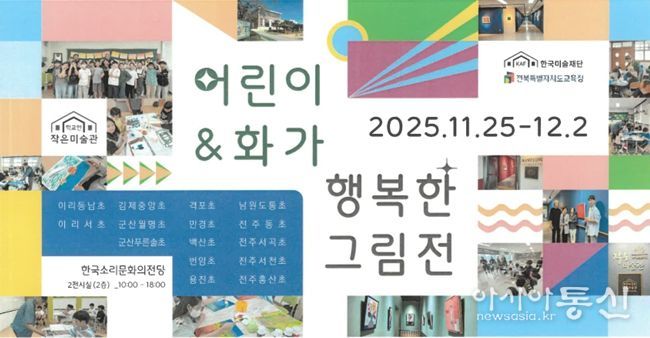 [아시아통신] 전북특별자치도교육청은 오는 12월 2일까지 한국소리문화의전당 갤러리 2전시실에서 ‘2025. 학교 안 작은 미술관 어린이&화가 행복한 그림전’을 개최한다고 26일 밝혔다.