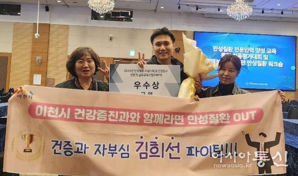 [아시아통신] 이천시보건소는 소속 직원인 김희선 주무관이 지난 18일 전라남도 여수에서 열린 ‘2025년 만성질환 사업기획 및 건강조사 전문가 실무교육과정(FMTP) 전국 최종 평가대회’ 구연 부문에서 우수상을 받았다고 밝혔다.