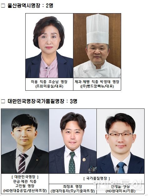올해는 ▲미용 분야 조순남 조희미용실 대표 ▲제과·제빵 분야 박영태 ㈜뺑드깜빠뉴 대표 등 2명이 울산 명장에 올랐다.