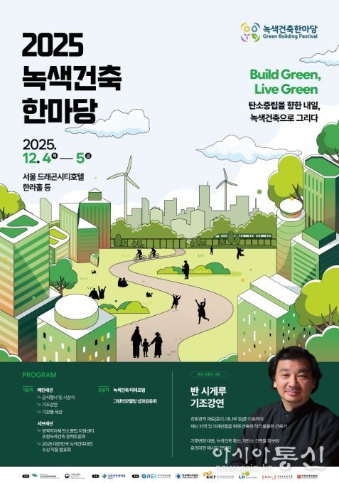 [아시아통신] 국토교통부와 국가건축정책위원회가 함께 주최하고 국토안전관리원이 주관하는 '2025 녹색건축한마당' 이 12월 4일과 12월 5일 서울(드래곤시티 호텔)에서 열린다.