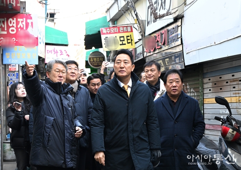 오세훈 서울시장이 4일(목) 노후 건축물이 밀집한 세운지구를 찾아 장기간 정체된 정비사업으로 인한 주민 불편과 요구사항을 청취했다. 세운 재개발은 서울시가 민간 참여 유도를 통해 도심에 대규모 녹지를 확보하기 위한 ‘녹지생태도심 재창조 전략’과도 직접 맞닿아 있다.