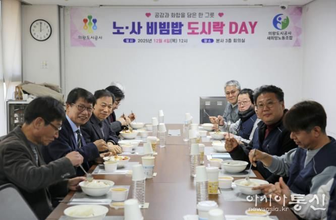 [아시아통신] 의왕도시공사는 12월 4일 노사 간 협력과 소통을 강화하고 건강한 조직문화 확산을 위한 ‘노·사 비빔밥 도시락데이’ 행사를 개최했다고 밝혔다.