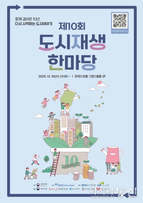 [아시아통신] 국토교통부는 12월 10일 오후 서울 콘래드 호텔에서 '2025 도시재생 한마당 10주년 행사'를 개최한다.