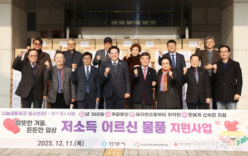 안양시와 안양시지역사회보장협의체는 11일 오전 11시 시청 본관 정문에서 ‘일사천리 지원사업’의 일환으로 추진하는 ‘따뜻한 겨울, 든든한 일상 어르신 물품 지원’ 전달식을 개최했다.