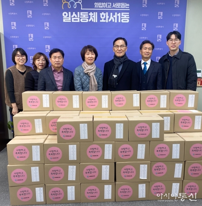 지난 9일 수원시 팔달구 화서1동(동장 허순옥)은, 수원영광교회(담임목사 김윤한)에서 연말을 맞아 지역사회 취약계층을 위한 생필품꾸러미 100박스를 화서1동에 후원했다고 밝혔다.