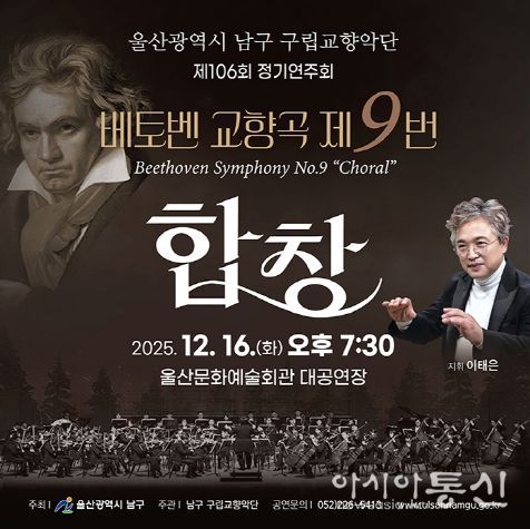 [아시아통신] 울산 남구 구립교향악단(지휘자 이태은)은 16일 오후 7시 30분, 울산문화예술회관 대공연장에서 ‘2025 송년음악회’를 열고 한 해를 마무리하는 품격 높은 클래식 무대를 선보인다.