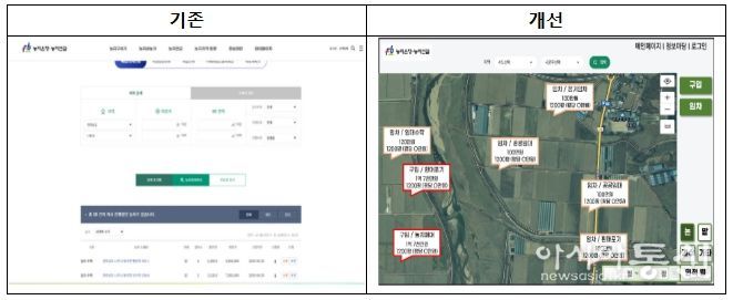 농지은행 사업 신청을 위한 농지은행 포털을 텍스트 기반에서 지리적 정보(GIS) 기반으로 개편한다. 농지은행 임대 농지 현황과 지도상 위치, 작물재배 이력 정보, 거래가격 등 정보를 ’26년 1월부터 제공한다. 청년농 등 사업 수요자는 지도(스카이뷰, 로드뷰 등)상에서 임대 매물 정보를 직관적으로 확인후 농지 임대 등을 신청할 수 있게 되어 정보 접근성이 크게 개선될 것으로 기대된다.