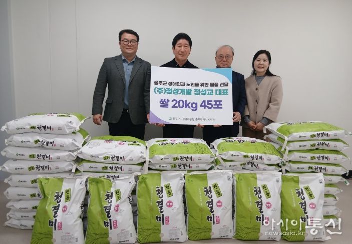 [아시아통신] 울주군시설관리공단(이사장 최인식) 중부장애인복지관은 12월 16일, ㈜정성개발(대표 정성교)로부터 백미 20kg 45포를 후원받아 전달식을 진행했다.
