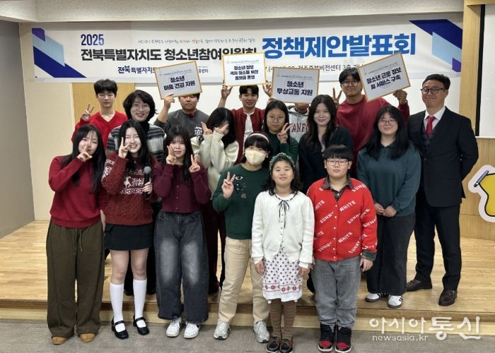 [아시아통신] 전북특별자치도는 17일 전주중부비전센터에서 도내 청소년과 관계자 등 20여 명이 참석한 가운데 ‘2025년 전북특별자치도 청소년참여위원회 정책제안 발표회’를 개최했다.