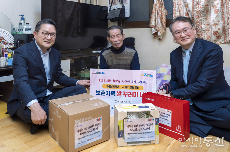 국가보훈부 서울지방보훈청(청장 이승우)은 겨울철 취약계층 집중관리기간('25.12.~'26.2.)을 맞아 지난 16일 NH농협금융지주와 함께 국가유공자 및 보훈가족을 대상으로 식품꾸러미 등 전달식을 개최하고 위문을 실시했다고 17일 밝혔다.